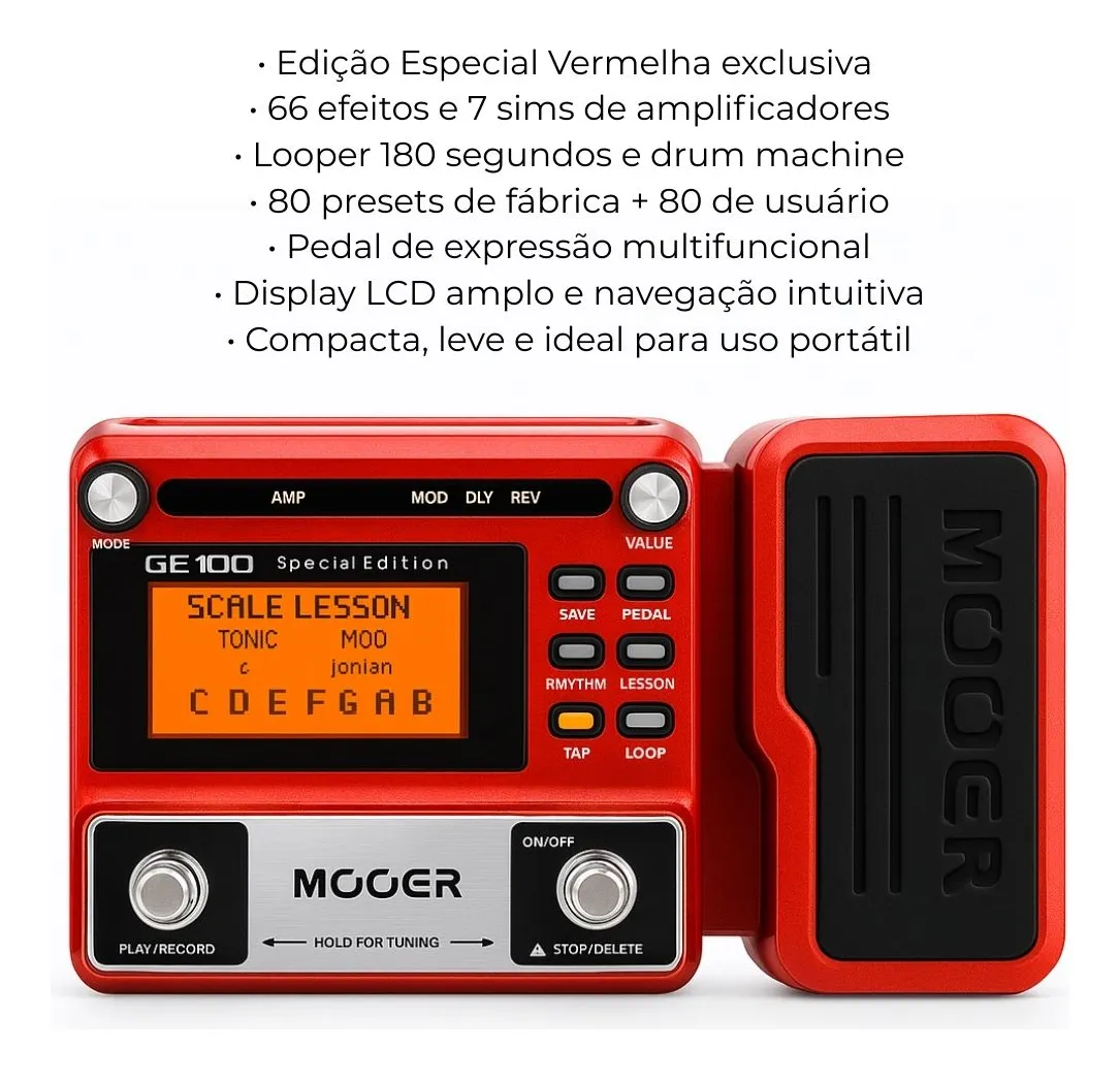 Mooer GE100 SE Vermelha – Pedaleira com Efeitos e Looper